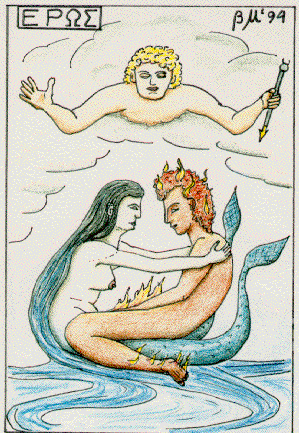 Published in Mail Artist's Tarot 1995, on the cover of Manteia: A Magazine for the Mantic Arts, No. 14, September 1995, and the back cover of Mulleposten, No. 45 (August 1995). All are published by Ouroboros, Sankt Hansgade 20, DK 4000 Roskilde, Denmark; in the US contact Sheila Wilding, 17645 Via Sereno, Los Gatos, CA 95030.